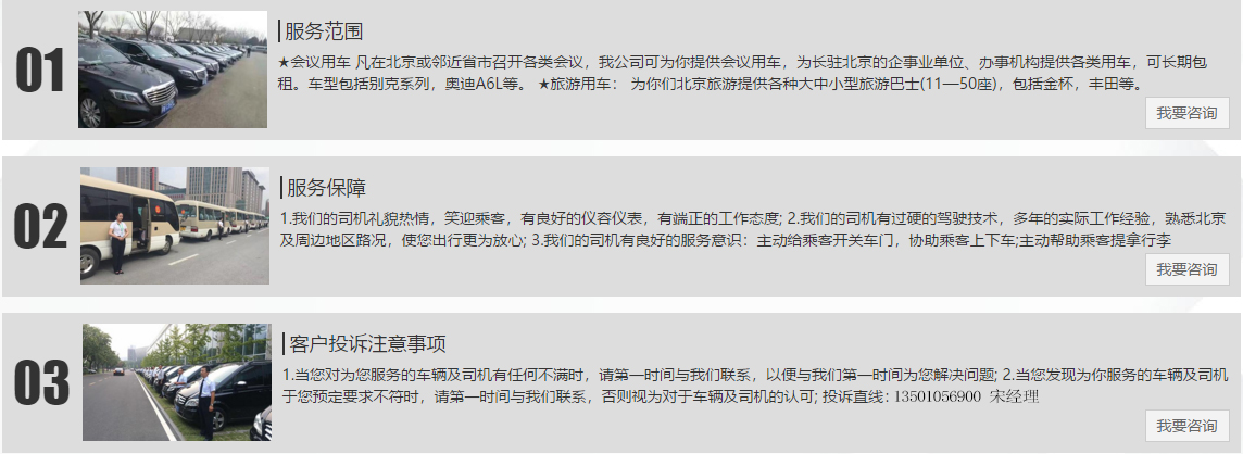 北京天鹏宇汽车租赁有限公司本着诚信是立足之本,便捷是努力的方向,创新是的生存之源,用户的满意和信赖则是最大收益的政策,为国内外宾客提供优质周到的服务!本公司致力于为国内外来京人士提供迅速便捷优质安全的交通运输服务,为各种国内外跨地区文化交流活动、在京举办的专业会议商务谈判、个人旅游考察提供标准化、规范化的服务,满足客户的特殊个性需求。